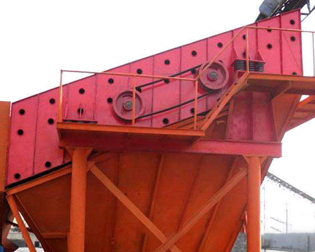 直線(xiàn)式方形篩利用振動(dòng)電機(jī)激振作為振動(dòng)源,使物料在篩網(wǎng)上被拋起,同時(shí)向前作直線(xiàn)運(yùn)動(dòng),物料從給料機(jī)均勻地進(jìn)入篩分機(jī)的進(jìn)料口,通過(guò)多層篩網(wǎng)產(chǎn)生數(shù)種規(guī)格的篩上物、篩下物、分別從各自的出口排出。