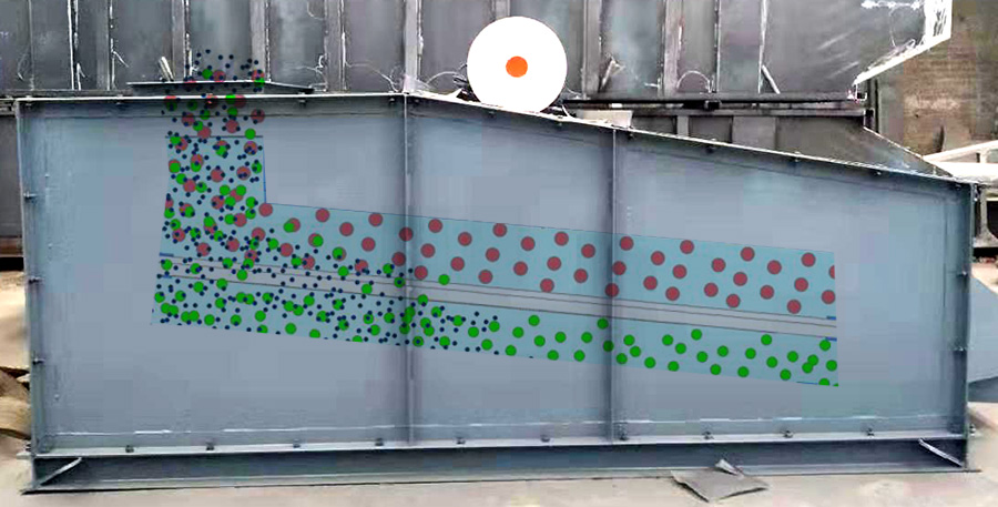 物料從水泥篩上部進(jìn)料口落入篩網(wǎng)上,篩網(wǎng)框與振動電機(jī)固定在一起,所以篩網(wǎng)隨著振動電機(jī)的振動作近似圓的軌跡運(yùn)動。物料在篩網(wǎng)上被不斷地拋起,并向前下方移動。物料中小于網(wǎng)孔尺寸的粉料及顆粒就穿過篩網(wǎng)落下。而大于網(wǎng)孔尺寸的雜物則從篩面流經(jīng)排渣口排出,從而完成篩分工作。減振彈簧是為了減少該機(jī)對地面的振動力。護(hù)網(wǎng)是為了防止安裝、維修時(shí)的工具或其它物件落入料倉中。